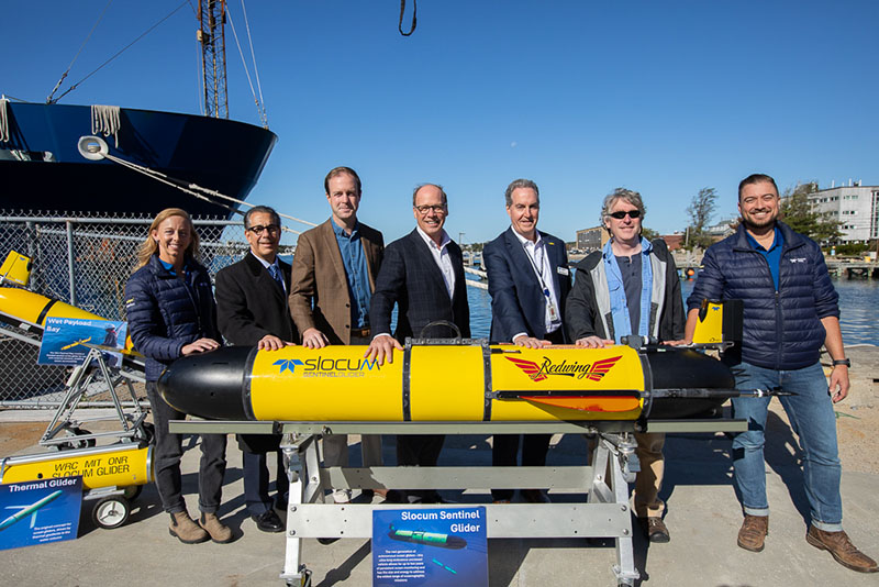 Left to right: Cordie Goodrich - Teledyne Marine, Michael Kasparian - Falmouth Chamber of Commerce, Thomas Moakley - MA State Rep, Peter B. de Menocal- WHOI, Brian Maguire - Teledyne Marine, Clayton Jones - Teledyne Marine, and Shea Quinn - Teledyne Marine.